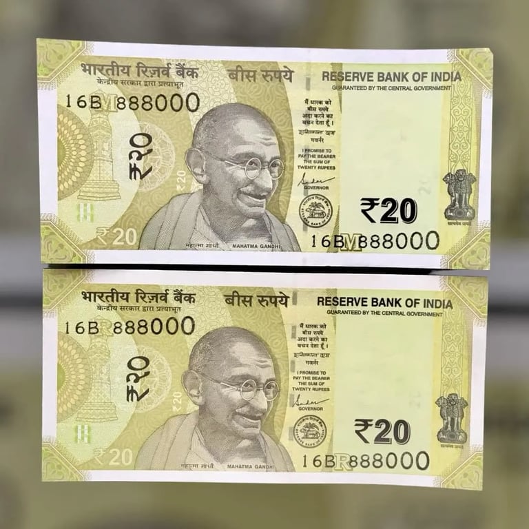 RS 20 INDIA BANKNOTES SEMI FANCY TWIN SETS 16B 888000 UNIQUE AND RARE