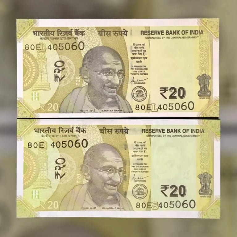Rs 20 TWIN PAIR NOTE BOTH NUMBER SAME