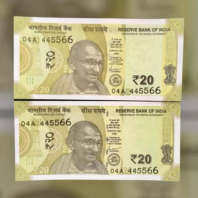 Rs 20 TWIN PAIR NOTE BOTH NUMBER SAME
