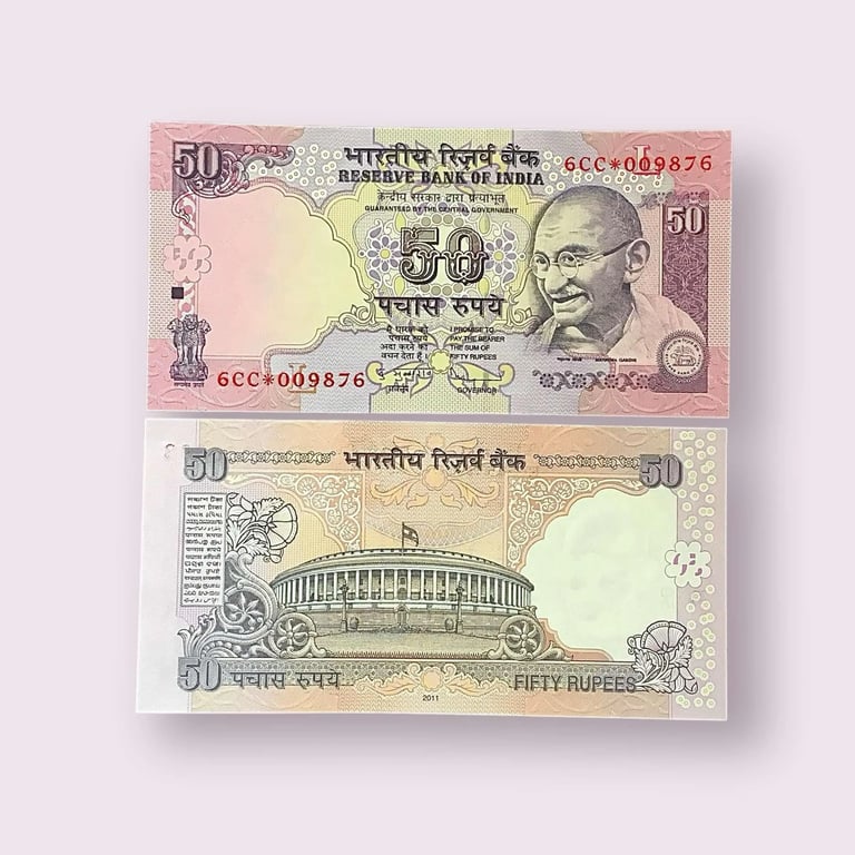 Rs 50 STAR REPLACEMENT LOW SERIAL 009876 PREFIX 6CC Signed by D Subbarao Year 2011 Issue Gem Unc Very Unique and Rare