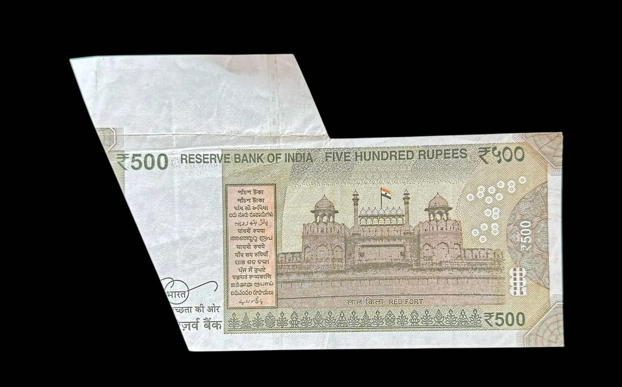 Rs 500 India Banknote Cut Sheet Fold Error Gem Unc Very Unique and rare