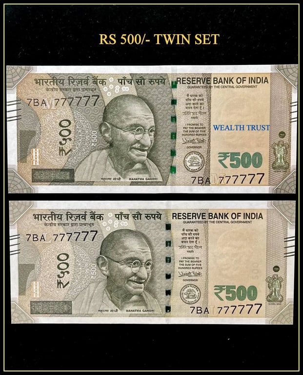 Rs 500 Twin Pair Gem Unc Very Unique Banknote Set SUPER Solid Number 7BA 777777