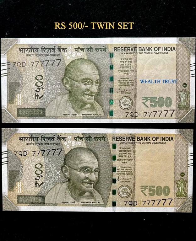 Rs 500 Twin Pair Gem Unc Very Unique Banknote Set SUPER Solid Number 7QD 777777