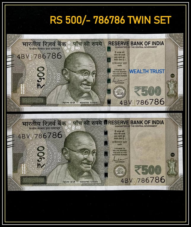 Rs 500 TWIN SET Gem Unc Very Unique Bank Note Set Solid Holy Number 4BV 786786