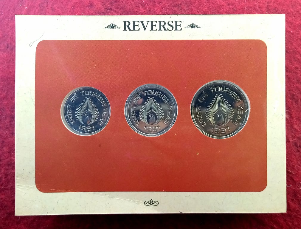 1991 - India Tourism Year (Bombay) UNC 3 Coins Set (Rs.5, Rs.2,Re.1) Mint : Bombay Year : 1991 Denomination : Rs.5, Rs.2,Re.1