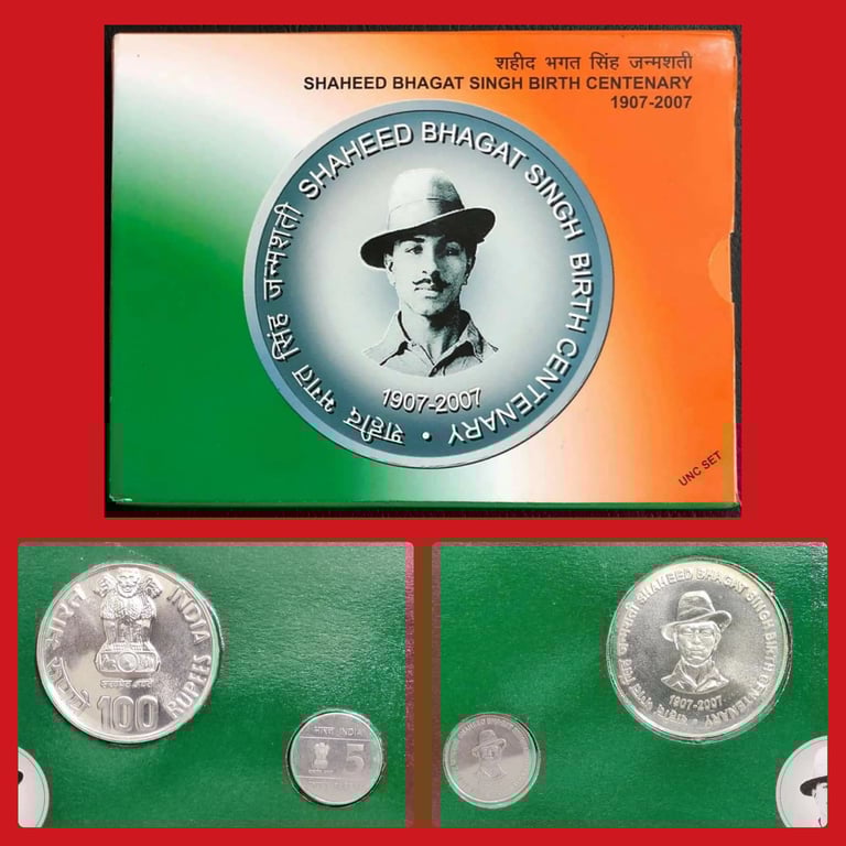 2007 shaheed bhagat singh birth centenary 2 coins unc set issued by kolkata mint