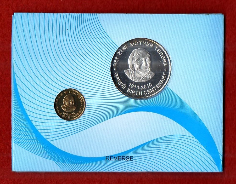 2010 - Mother Teresa Birth Centenary UNC 2 Coins Set (Rs 100, Rs 5) Mint Kolkata Year 2010 Denomination Rs.100, Rs.5