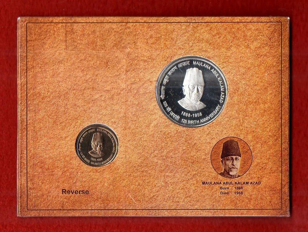 2013 – 125th Birthday of Maulana Abul Kalam Azad UNC Coin Set Mint Kolkata Year 2013 Denomination Rs.20, Rs.5