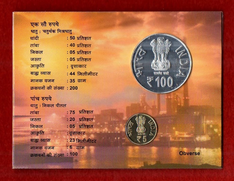 2014 - Jamset Ji Nusserwanji Tata 175th Birth Anniversary (1839-2014) UNC 2 Coins Set (Rs.100, Rs.5)