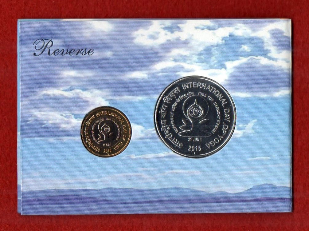 2015 International Day of Yoga 21 June UNC Coin Set Mint Mumbai Year 2015 Denomination Rs.100, Rs.10