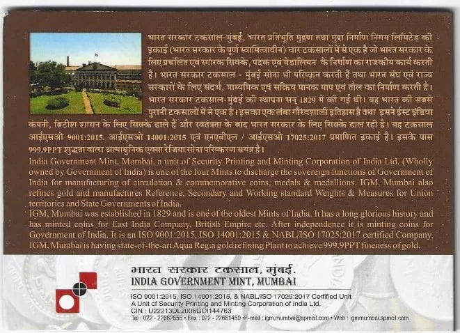 400th Birth Anniversary of Sri Guru Teg Bahadurji Folder Proof Coin set