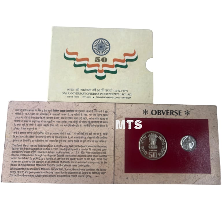 50 Years of independence Unc coin set ( 50₹ + 5₹) Issued by India Government Mint mumbai