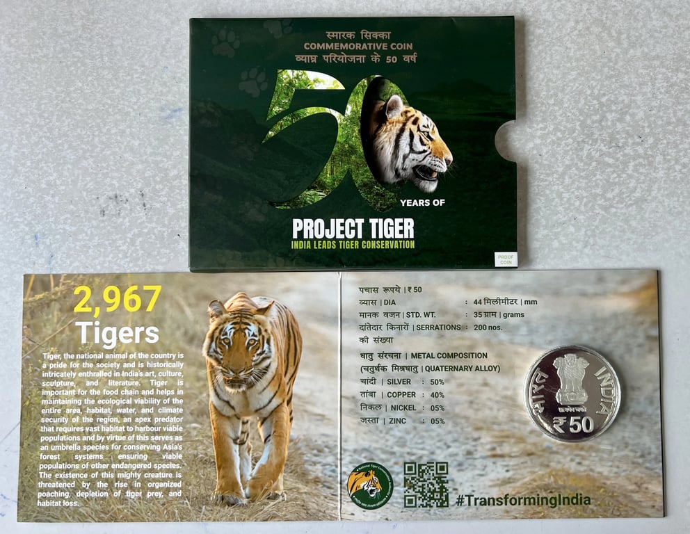 50 Years of Project Toger Proof Set Is minted & issued by India Government Mint Hyderabad in 50₹ Denomination coin with a composition of
