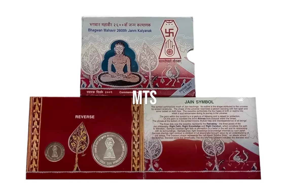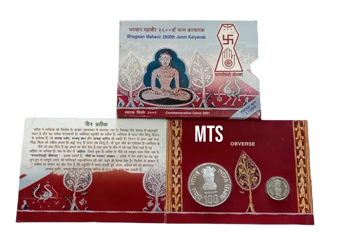 Bhagwan mahavir proof coin set is Issued by Indai government mint mumbai , Its a 2 coin set ( 100₹ & 5₹)