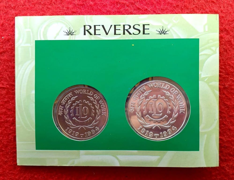 International Labour Organisation (ILO) World Of Work 1994 Commemorative UNC 2 Coins Set (Mumbai Mint)