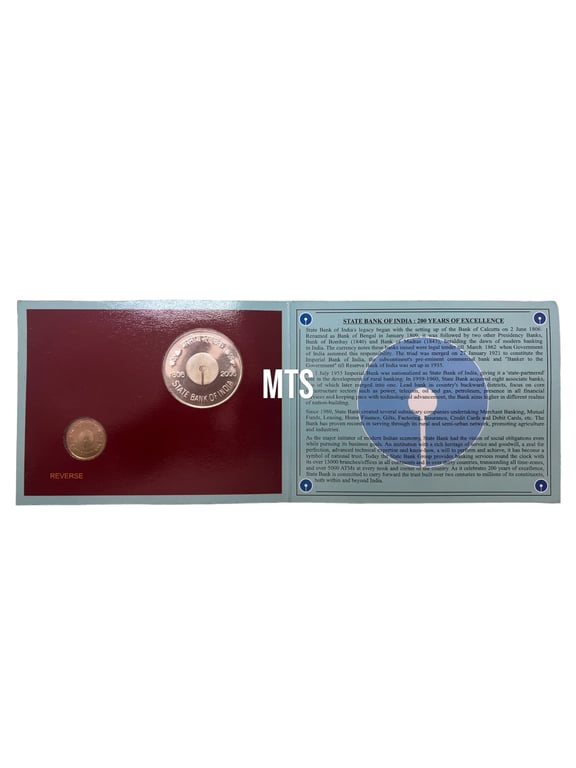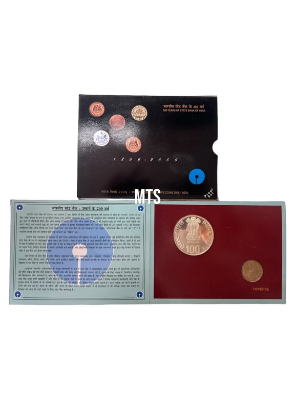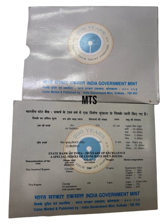 200 Years of State Bank of India proof coin Set ( 100₹ + 5₹ ) Issued By India Government mint kolkata