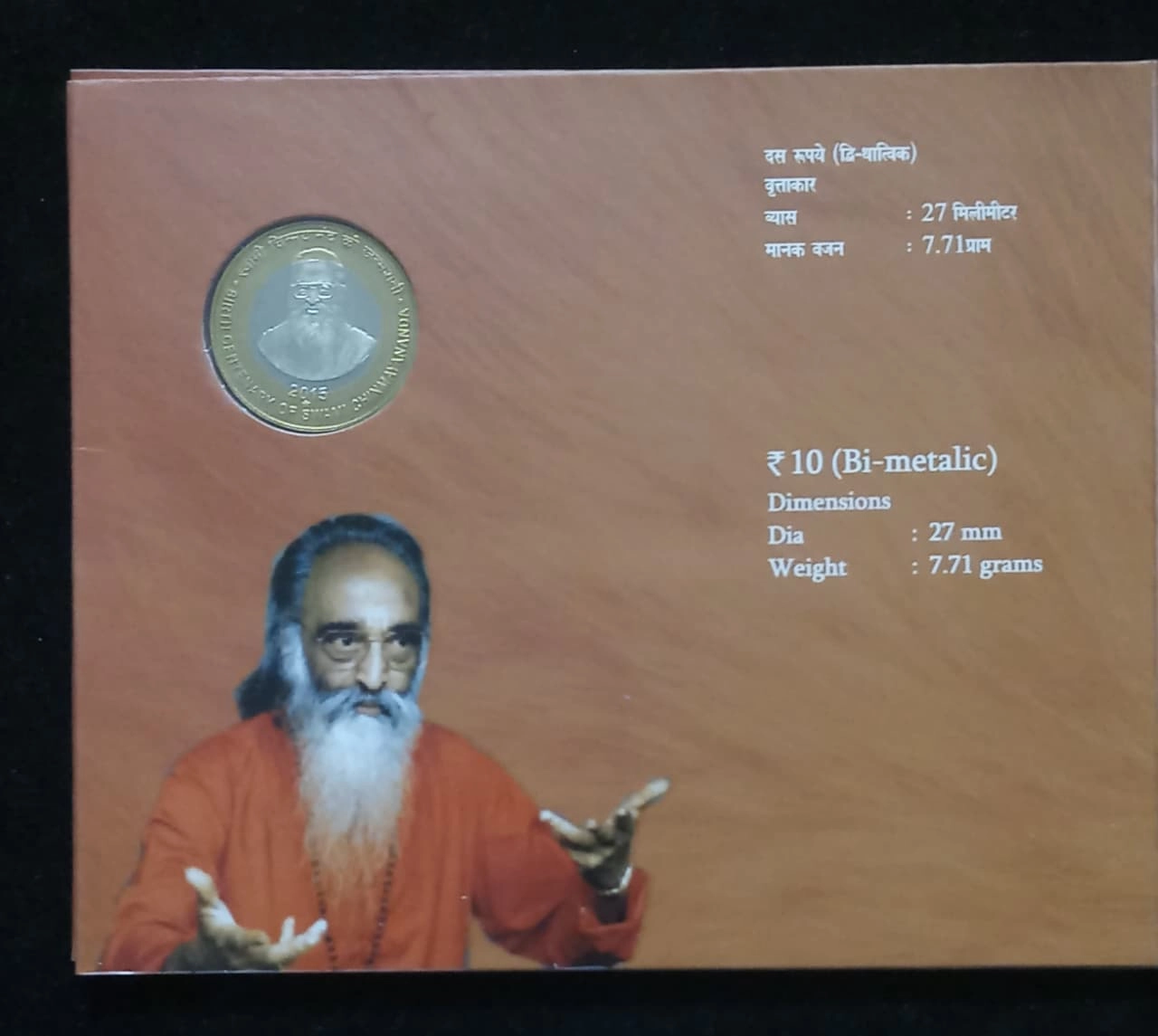 10 Rupee Coin Set of Birth Centenary of Swami Chinmayananda Single Coin Set of Hyderabad Mint