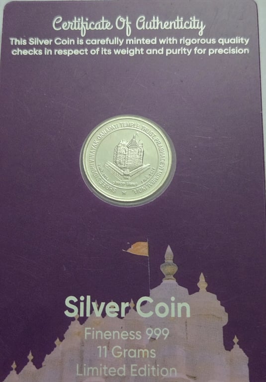 Shree Siddhivinak Ganpati Temple Prabhadevi Mumbai Mint 11 gms 999 Silver Coin Rare