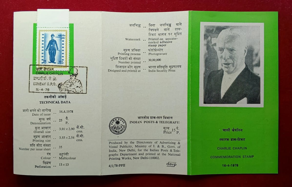 1978 Charlie Chaplin Informationa sheet With Stamp